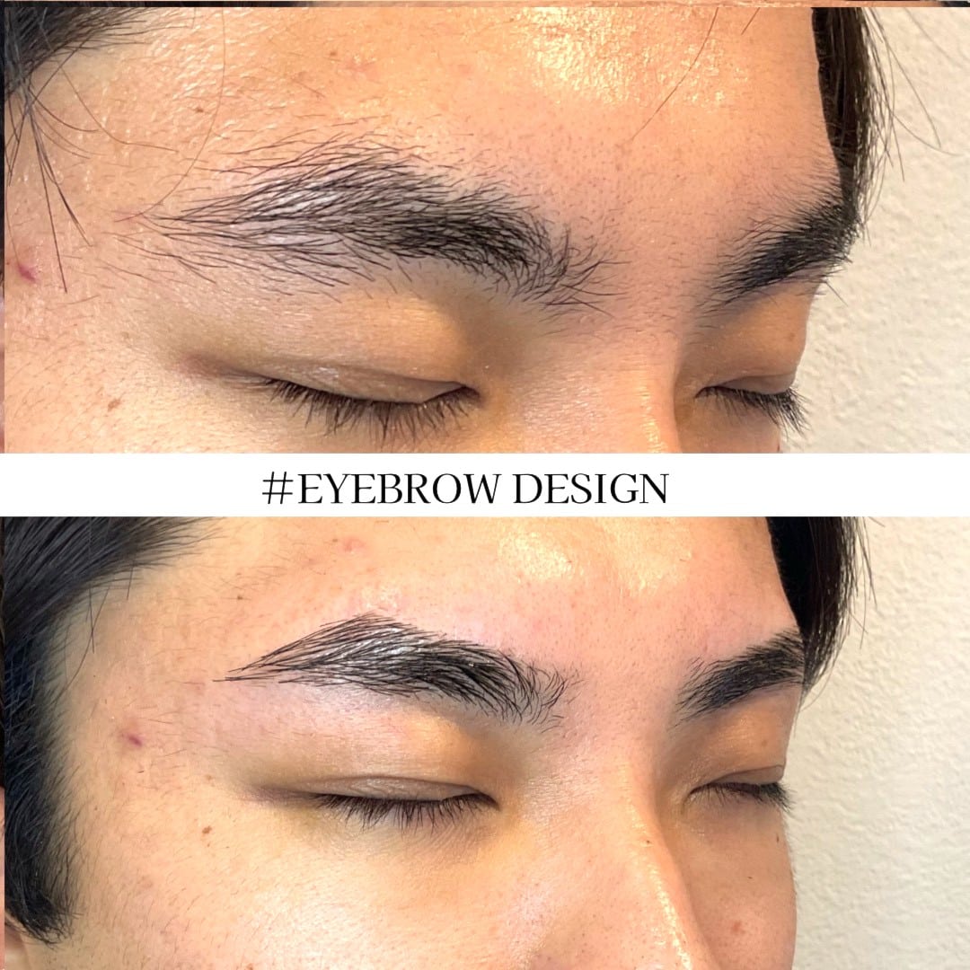 眉山に角があり眉下のお目元に近い部分に1箇所アーチがはいることで、男性らしい中にも優しさをプラスできるデザイン