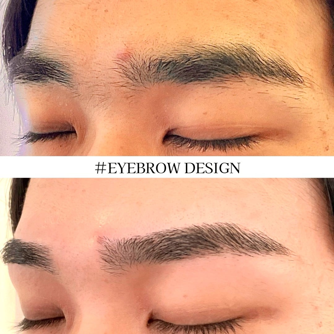 いきなり細くしてしまうと、元の眉からかなりかけ離れた印象を与えるので、眉全体の太さは二重幅含む縦幅分で自然な太さにし、角度は元々ついてはいなかったのであまり変えずに、床とほぼ同じなだらかな角度にしてアーチ感を入れ、優しい形にしました🌈